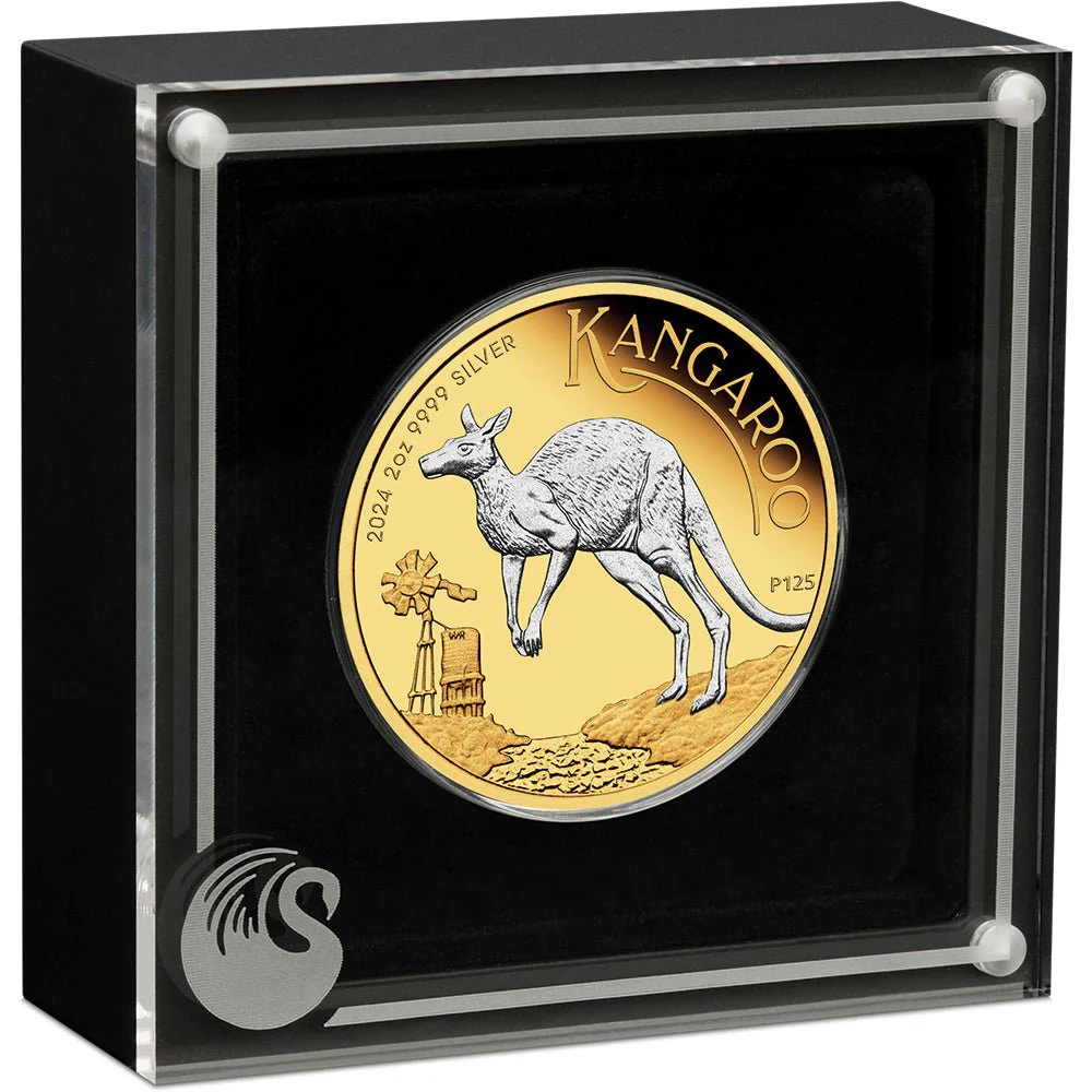 2024 Australian Kangaroo 2oz Silver Proof Reverse Gilded Coin