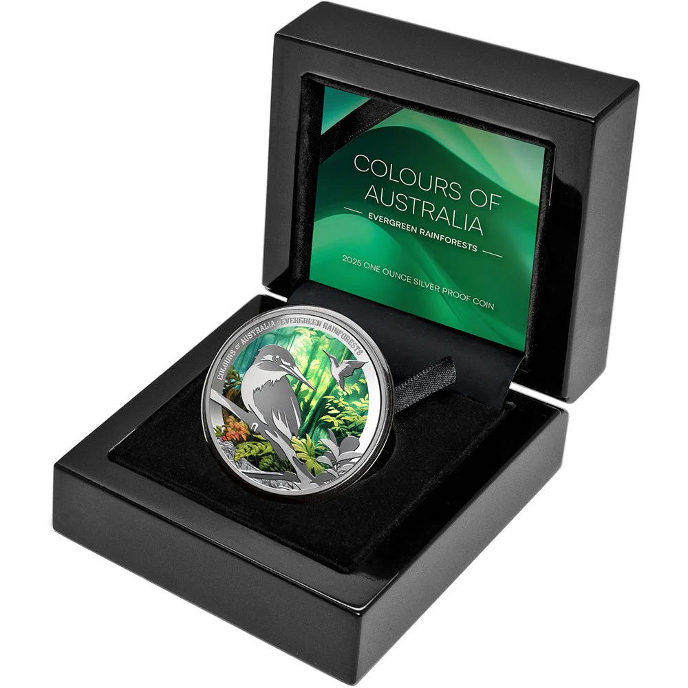 Set within a case with a numbered Certificate of Authenticity, you must not miss the chance to secure the Colours of Australia 2025 $1 Evergreen Rainforest 1oz Silver Proof.