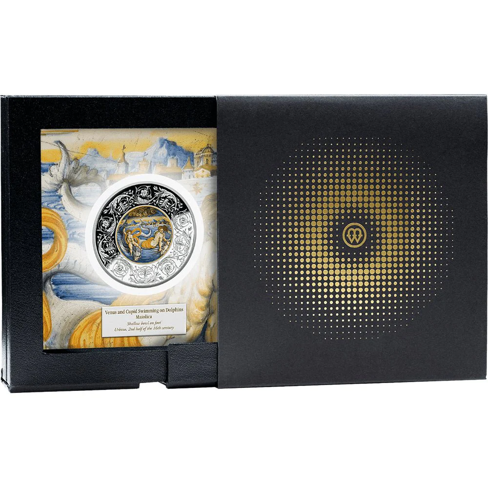 2025 €5 Maiolica - Venus & Cupid Swimming On Dolphins 1oz Silver Coin